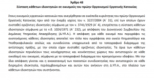 Τροπολογία του Σ/Ν του Υπ. Εργασίας και Κοινωνικών Ασφαλίσεων με τίτλο: «Εξορθολογισμός ασφαλιστικής και συνταξιοδοτικής νομοθεσίας, ενίσχυση ευάλωτων κοινωνικών ομάδων και άλλες διατάξεις», για τη σύσταση κάθετων ιδιοκτησιών σε οικισμούς του πρώην οργανισμού Εργατικής Κατοικίας.